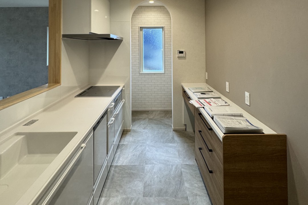 料理をしながら、リビングで勉強したり遊んだりするお子様を見たり、洗濯機から1歩で干せる物干しなどママの強い味方の間取りとなりました。